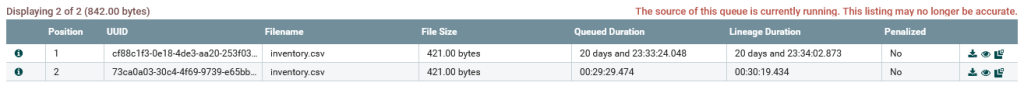 We can open the connector and see the queued FlowFiles:
