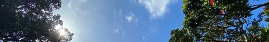 Author's photo of one of the Emerald Lakes on the Tongariro Alpine Crossing in New Zealand/Aotearoa. Milky blue water with indistinct hills in a misty background and reddish rocks in foreground in shallow water near edge of lake